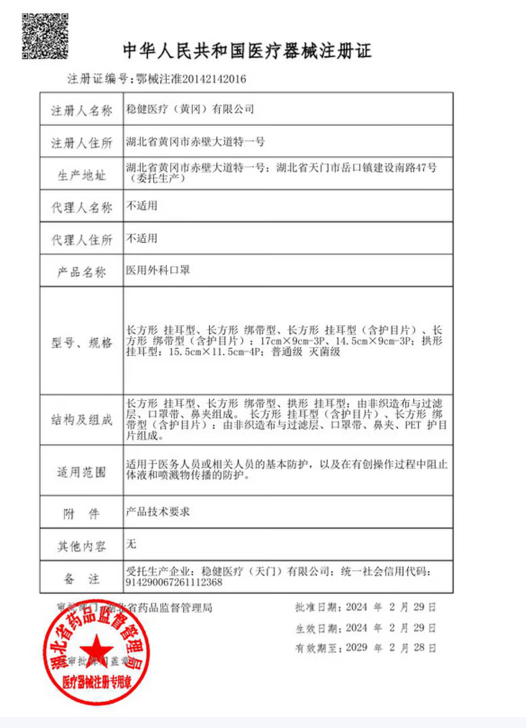 稳健医用外科灭菌口罩独立包装一只一袋*100棉里层亲肤透气防花粉过敏